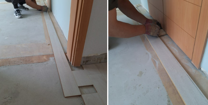 다음으로 재단 작업 단계에서는 공간의 크기와 모양에 맞게 강마루를 재단합니다. 이 과정에서 정확한 측정과 계산이 필요하며, 불필요한 자재 낭비를 막기 위해 신중히 진행됩니다.