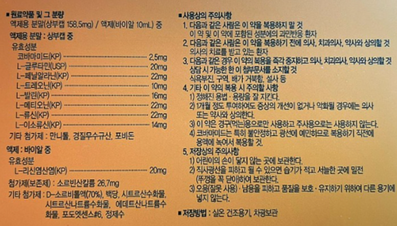 - 복용 전 준비: 병을 충분히 흔들어 액체와 분말을 잘 섞어줍니다. 이는 성분들이 균일하게 분포되도록 하기 위함입니다.