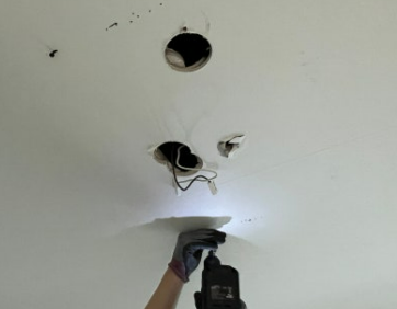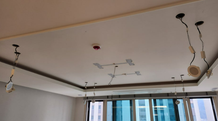 설치 위치가 결정되면, 다음 단계는 천장을 타공하는 것입니다. 타공 작업은 정확한 위치에 홀을 뚫어야 하므로 신중하게 진행됩니다. 천장에 구멍을 뚫는 작업은 먼지가 발생할 수 있으므로, 작업 전후에 주변 청소를 철저히 해야 합니다.