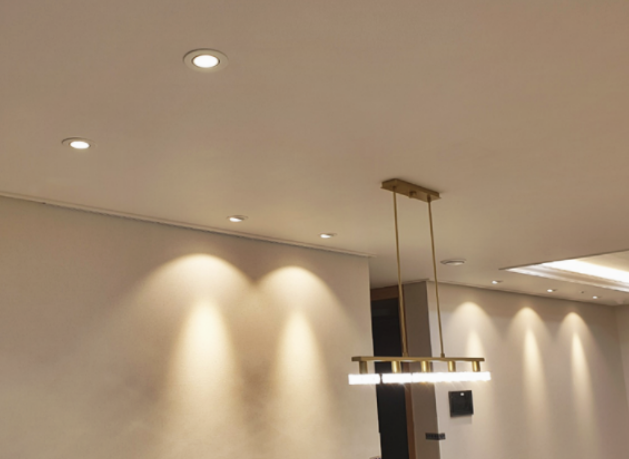 다운라이트 조명 공사과정은 먼저 설치 위치를 정하고, 천장을 타공한 후 전기 배선을 연결하는 순서로 진행됩니다.