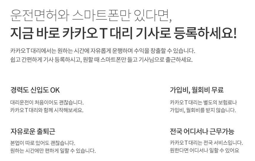 가입 절차는 본인의 운전면허증과 필요한 서류를 제출하고, 일정한 심사를 거치는 것입니다. 최근에는 카카오T 대리와 같은 플랫폼이 대리기사를 모집하면서 더 많은 사람들이 이러한 플랫폼을 통해 대리기사로 활동하고 있습니다.