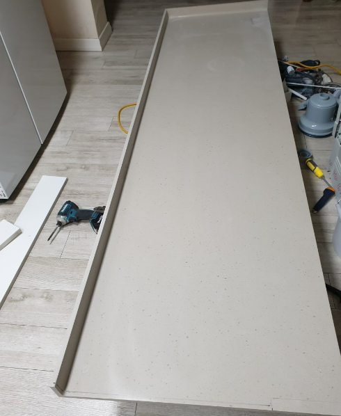 인조대리석보다 한 단계 업그레이드된 소재로, 천연 대리석에 가까운 외관을 제공합니다. 내구성이 좋고 유지관리가 비교적 쉽습니다. 90% 이상이 천연 석영으로 구성되어 있어 고급스러운 느낌을 줍니다.