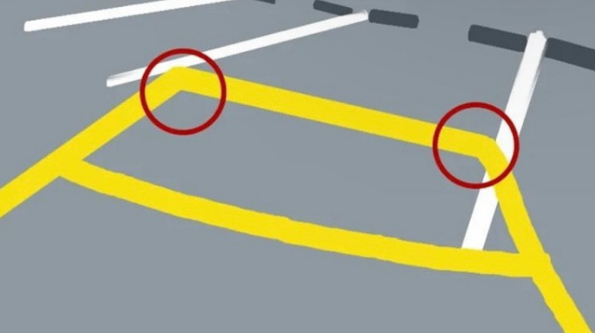 첫 번째 단계는 차량의 위치를 잡는 것입니다. 가장 바깥쪽 노란선의 꼭짓점과 주차할 공간의 주차선 끝부분을 맞춥니다. 이 때 차량을 주차 공간과 평행하게 위치시키는 것이 중요합니다.